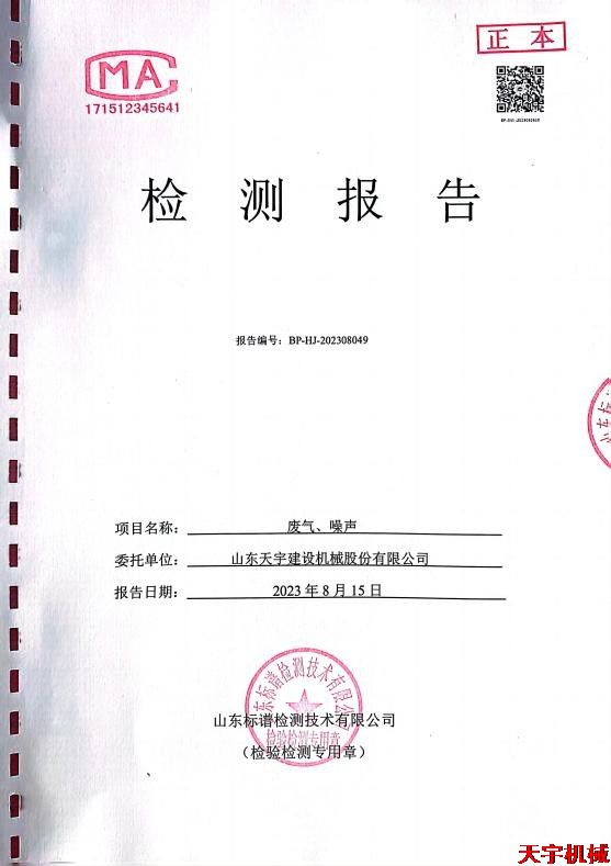 山東天宇建設(shè)機(jī)械股份有限公司廢氣、噪聲檢測(cè)報(bào)告公示