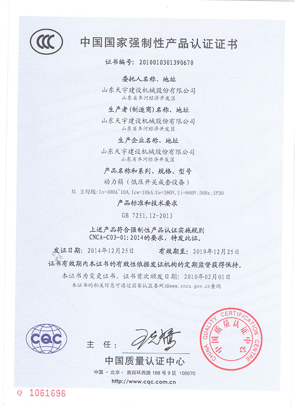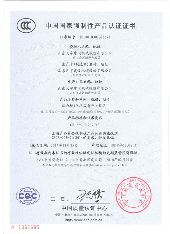 強(qiáng)制性產(chǎn)品認(rèn)證證書-3c動(dòng)力柜